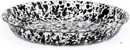 This hand finished process means that each piece is unique in color coverage and patterns.It is oven, freezer, and dishwasher safe. Enamelware is not intended for microwave use.