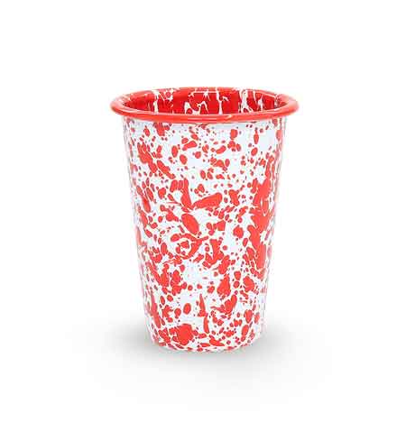14 Oz Enamelware Tumbler, Red Marble Set of 4