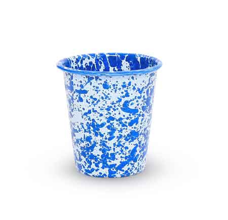 Crow Canyon Home Enamelware 10 oz. Blue Marble short tumbler measures approximately 4.5" Tall with a 3.5" Diameter at the top.