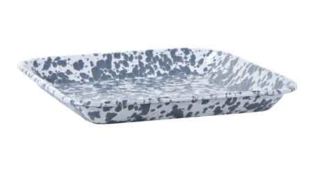 One Golden Rabbit Enamelware 10.5" square tray or baking sheet with rolled edges.Golden Rabbit enamelware rolled edge products are handcrafted in China where porcelain enamels are fused onto carbon steel at very high temperatures. The two coat process results in a slightly textured surface. In terms of durability, Golden Rabbit enamelware holds up to oven, stove-top and even broiler heat, as well as freezer storage. It is dishwasher safe, but is not intended for microwave use.