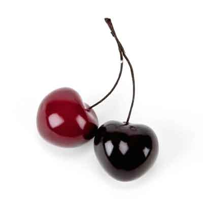 Artificial cherry pair in a box of 36 (72 cherries in all). Stem is approx 2" with a 1" diameter on the cherries. Each pair has one red and one burgundy cherry. Made in China. For decorative use only. Perfect for bowl fillers, wreaths, displays or craft projects.