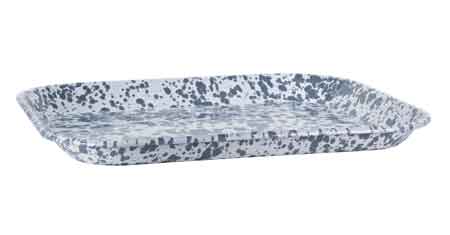 One Golden Rabbit Enamelware 12.5" X 16" half sheet tray or baking sheet with rolled edges and slightly sloping sides.