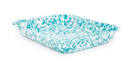 Crow Canyon Home Enamelware Turquoise Marble large open roasting pan, 10" X 13" Bake delicious casseroles for yourself or others! Makes a great gift idea around the holidays for giving special dishes or desserts...with the pan! Use as a meat tray for the grill. Bake desserts or cook casseroles. Rim is .5", inside dimensions: 12" X 9, 2" deep