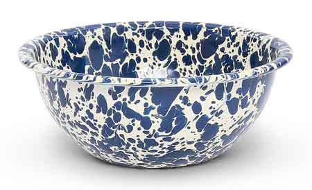 Crow Canyon Home Navy on Cream marble enamelware 6" diameter cereal or snack bowl.