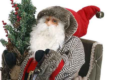Santa figurine from Demdacos Silvestri's Holiday Mercantile Collection.Santa sits in an iron sleigh with a large pack of gifts. A lantern with LED light is mounted on the front of the sleigh to guide the way! Santa has a fluffy white beard and fur trimmed hood and coat. He is holding reins decorated with jingle bells and a small Christmas Tree. A holiday treasure to enjoy for years to come!Polyresin, plastic and polyester fibers.23"L X 8.5"W X 23"H.