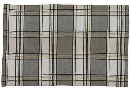 Set of 4 Park Designs 13" X 19" placemats. Part of the Mistletoe Plaid Collection. Shades of green, black, tan and white are accented with a narrow yellow stripe. 100% cotton, made in India. Machine wash, reshape, lay flat to dry.