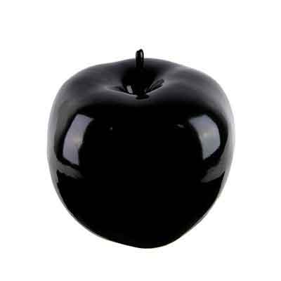 One large, artificial apple with a shiny hard black coat. The apples measure 6" in diameter and approx 6" high. They are perfect for table centerpieces or large fruit displays.