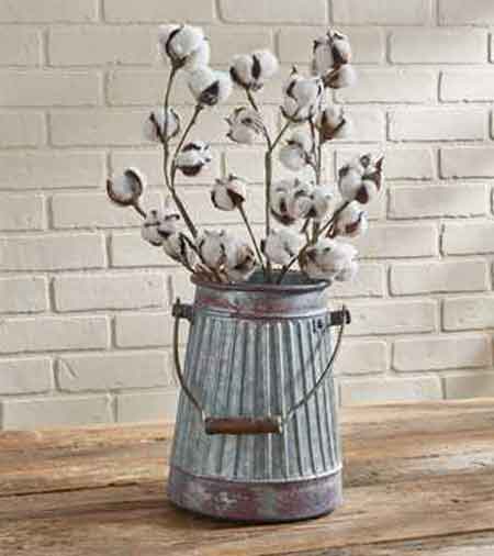 Park Designs galvanized and crimped tin Lexington Milk Bucket. Farmhouse chic decor with many uses! Not water tight. Stands 10.25 inches high. 6" diameter (outside) top and 8" diameter at the bottom. Bail handle with wooden grip.