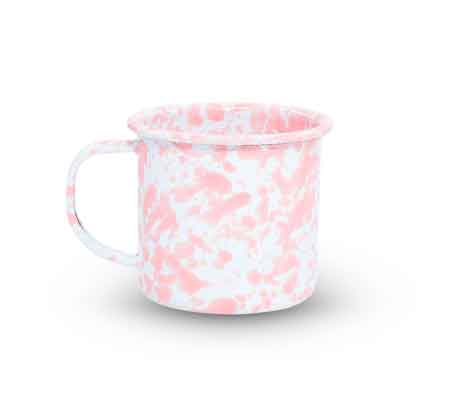 One Crow Canyon Home enamelware pink marble coffee mug. 12 ounce capacity to the rim. It has a 3.5" diameter and stands 3.25" high.