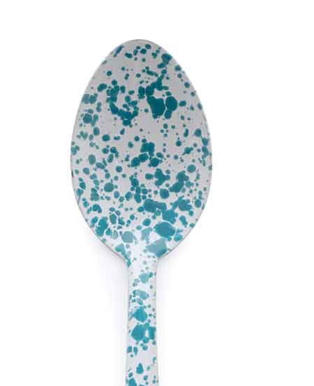 Made from carbon steel coated with porcelain enamel in a two coat process that results in a slightly textured surface. This makes each spoon unique in color patterns and coverage. The naturally non-stick surface compares to glass and is easy to clean, too!