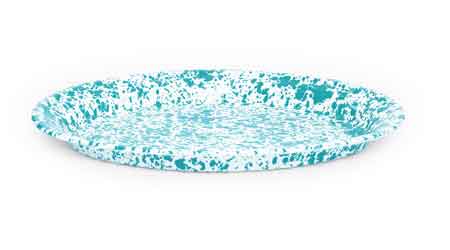 Oval Enamelware Platter Turquoise Marble