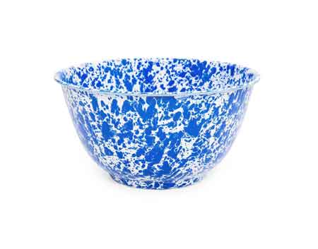 Crow Canyon Home Enamelweare Blue Marble Salad Serving Bowl. Great for serving salads, chips and more! 10.75" diameter, 5.75" T. Holds approximately 4 Quarts.