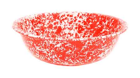 Crow Canyon Home Enamelware Red Marble Basin holds 5 quarts to the rim. 12" diameter. Shades of red may vary.