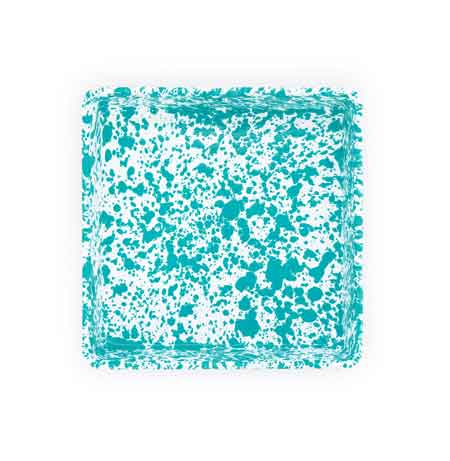 Enamelware Brownie or Cornbread Pan, Turquoise Marble