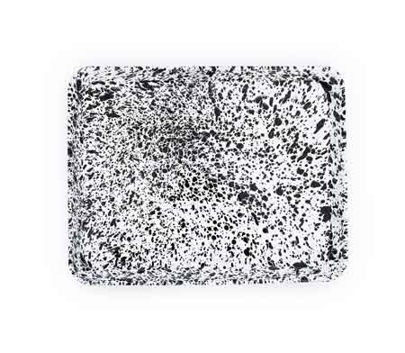 Crow Canyon Home Enamelware Black Marble Jelly Roll Pan or Rectangular Tray is a nice large baking and serving tray. Use as a Jelly Roll Pan, too! Measures 12.5"W X 16"L X 1.5"T.