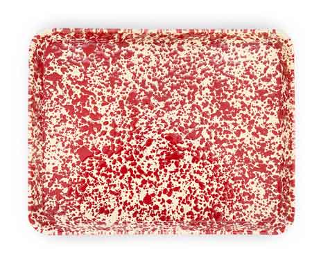 Crow Canyon Home Enamelware Burgundy On Cream Marble Jelly Roll Pan or Rectangular Tray is a nice large baking and serving tray. Use as a Jelly Roll Pan, too! Measures 12.5"W X 16"L X 1.5"T.
