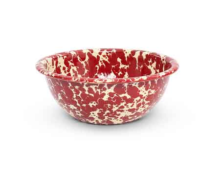 Crow Canyon Home burgundy marble (on a cream colored base) enamelware 6" diameter cereal or snack bowl.