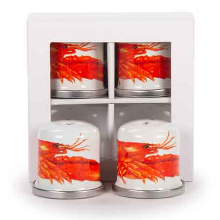 Made from carbon steel coated with enamel. The graphic designs on Golden Rabbit enamelware are fused into the enamel during the firing process and are covered with glass fritz that gives the piece a protective surface as well as a high gloss finish. Two of the shakers have 2 holes and the other two have one hole. The shakers have a 1.5 inch diameter. The stainless steel rim at the bottom has a 1.75 inch diameter. They stand 1.75 inches tall and have a .75 inch diameter filling hole with a frosted white rubber stopper.